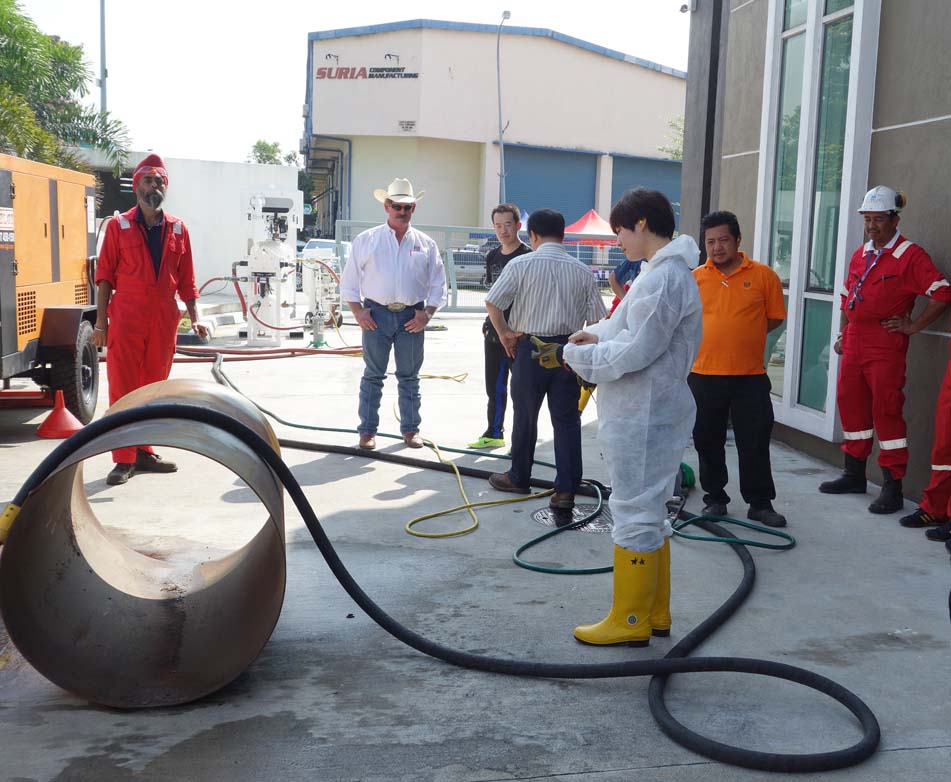 为了更好服务于喷砂客户和代理商,做好客户和代理商的技术服务工作,解决他们在实际喷砂工作中遇到的各种问题。公司在2015年1月25日组织8名技术和销售人员到国外最好的喷砂设备厂家学习考察